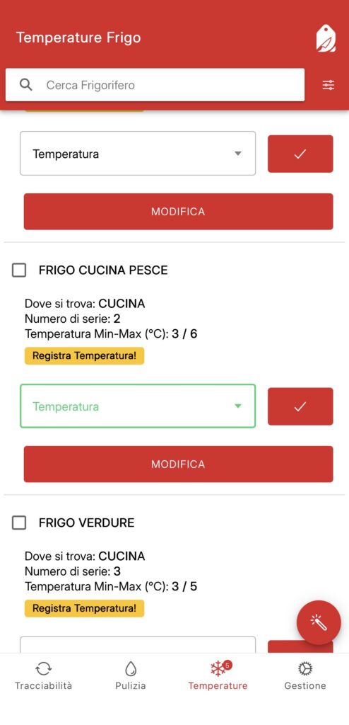 🌡️ Passo 3 — Registra la temperatura di conservazione I molluschi bivalvi vanno conservati a temperature specifiche. FoodTag permette di registrare le temperature di frigoriferi e celle direttamente dall’app, associando ogni rilevazione a temperatura minima e massima. In caso di controllo, hai uno storico verificabile — non un foglio cartaceo compilato a mano.