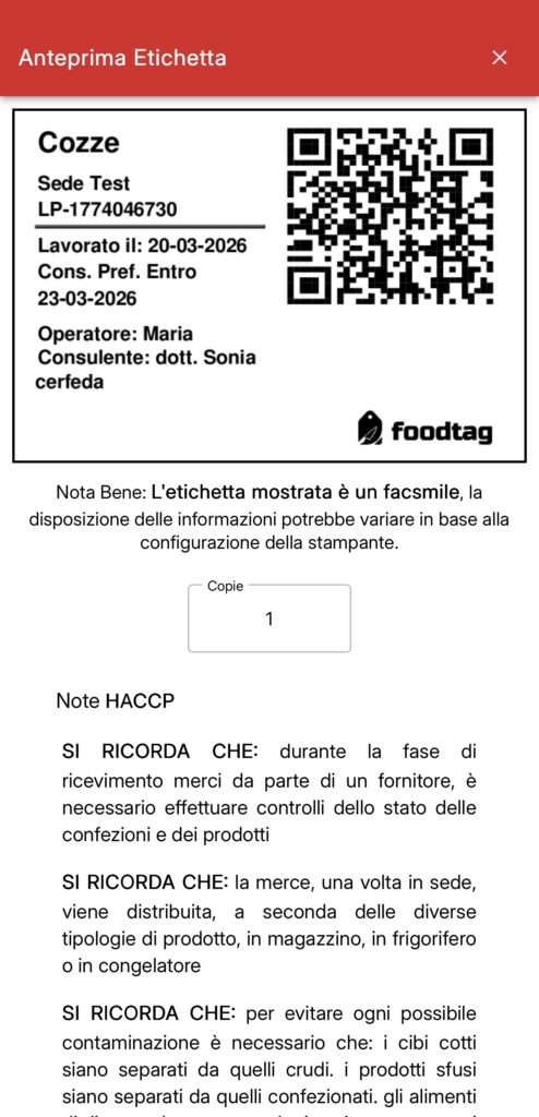 FoodTag è un’app per la gestione operativa dell’HACCP e della tracciabilità alimentare nelle cucine professionali. Il flusso per i frutti di mare — come per qualsiasi altro alimento — funziona così: